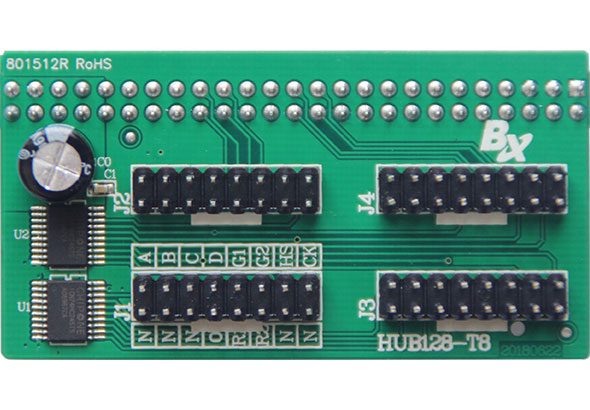 在制作中大面積顯示屏時,建議從電源端引線對HUB板直接供電,以充分保障HUB板的輸出信號質量。對于超長LED顯示屏的信號級聯能力將大有好處!