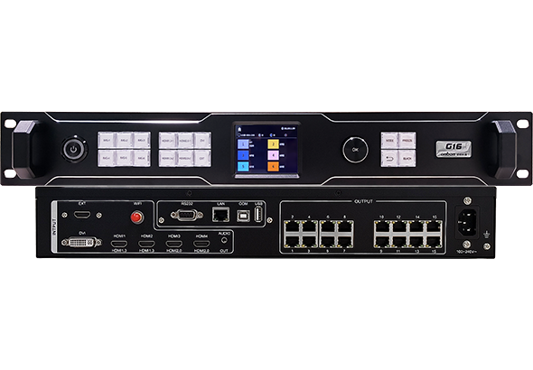 OVP-G16 六畫面LED拼控一體設備滿足4K×2K和8K×1K超高分辨率輸出。設備集成16千兆網口大發送,支持6畫面顯示,支持高動態范圍HDR10視頻源輸出,提供超清晰沉浸視覺體驗。支持LED顯示屏的遠程維護。