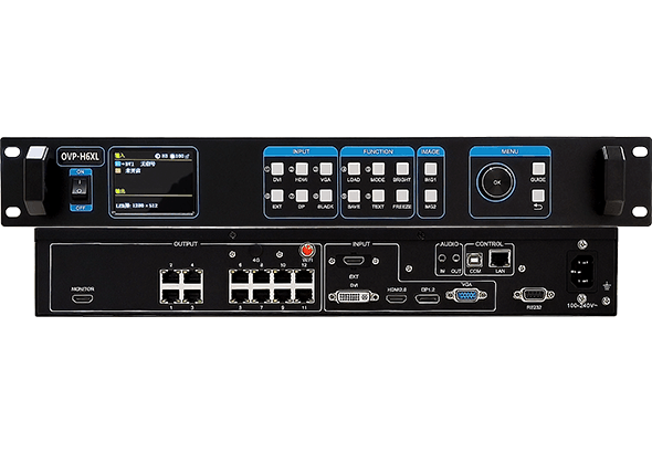 OVP-H6XL面向大型酒店、高端會議、酒吧KTV等應用領域,支持2畫面顯示和任意布局。支持4Kx2K@60Hz圖像處理和拼接。設備集成12千兆網口大發送,支持4K點對點輸出,支持LED顯示屏的遠程維護。