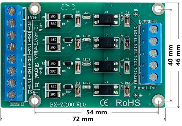 支持4路12-48V直流信號轉換,接入BX控制器的節目選擇開關