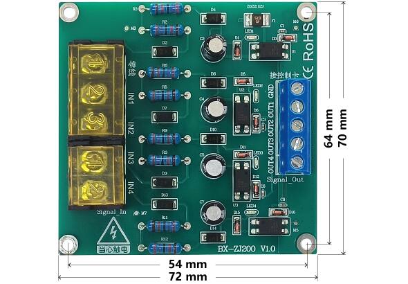 支持4路154VAC-264VAC交流信號轉換,接入BX控制器的節目選擇開關