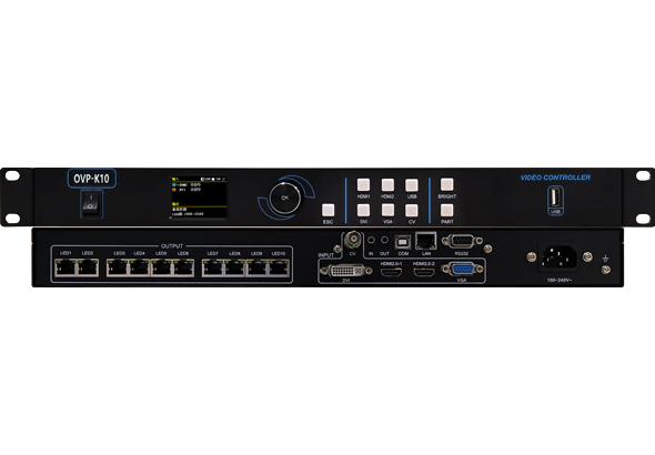 OVP-K10設備集成10千兆網口大發送,支持4K點對點輸出,支持LED顯示屏的遠程維護。支持U盤播放功能。