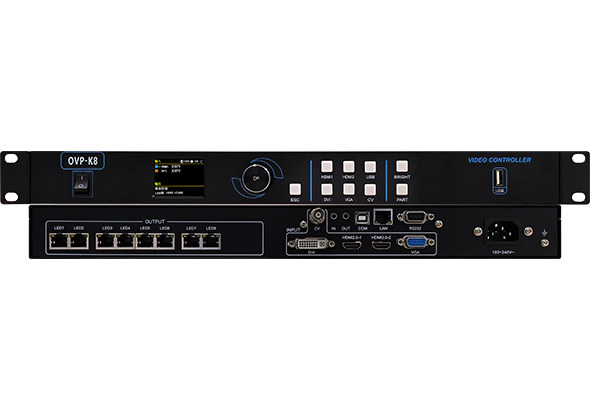 OVP-K8設(shè)備集成8千兆網(wǎng)口大發(fā)送,支持4K點(diǎn)對(duì)點(diǎn)輸出,支持LED顯示屏的遠(yuǎn)程維護(hù)。支持U盤播放功能。