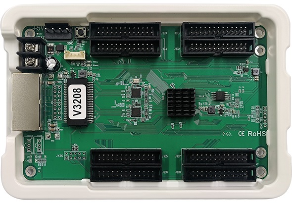 板載8路320接口,支持E信號(hào),最大32掃,32路RGB信號(hào)輸出。支持任意接口顯示數(shù)據(jù)組交換,RGB顏色順序交換,方便客戶(hù)靈活調(diào)整模組排線。